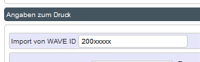 Sollten sich Informationen bzgl. des Drucks (Flag „Barcode, Institut, Druck“) über mehrere Jobs hinweg doppeln, können diese über das Feld „Import von Wave ID“ automatisch gezogen werden.